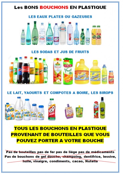 Ci-dessous, un rappel des bouchons qui pourront être déposés et ceux qui ne sont pas récupérés par l’association.