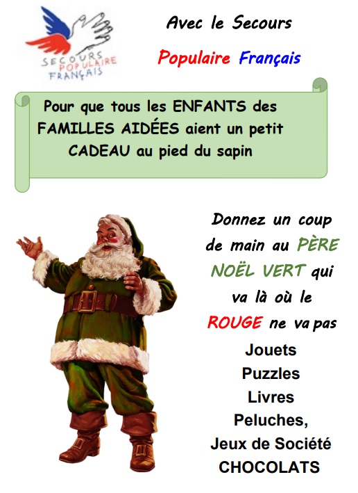 Jouets, livres, chocolats, puzzles,....en bon état, tout ce qui pourrait faire le bonheur d’enfants en cette fin d’année. Les éco-délégués ont mis en place un stand dans le hall de l’établissement et des élèves volontaires récupéreront les dons tous les matins jusqu’au 14 Décembre.
