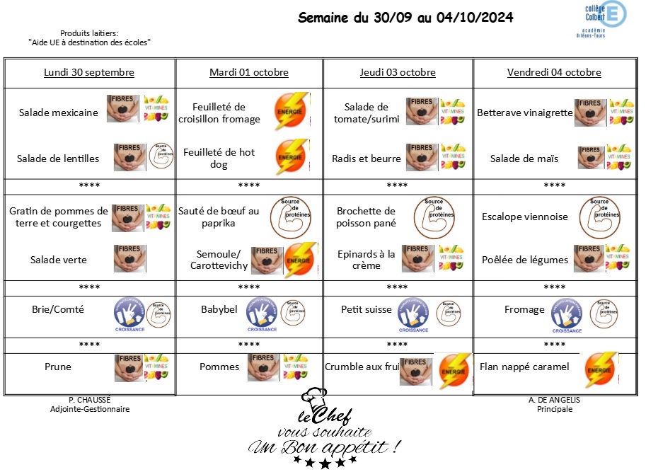 menus 30 sept au 4 oct